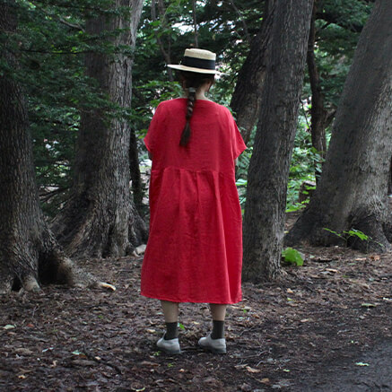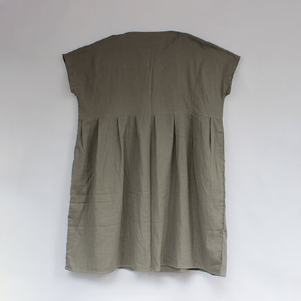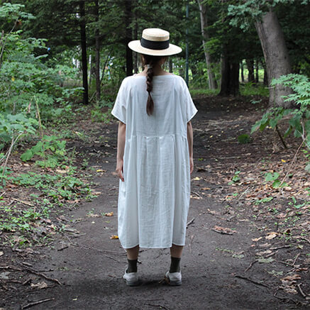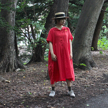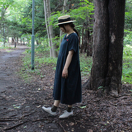 さらっとした快適な着心地のワンピースは一枚でも着やすく ゆったりとした着心地ながらも 落ち感のあるシルエットは 女性らしい雰囲気で着こなすことができます そして、何と言っても Vネックのスキッパーが顔周りをすっきりと見せてくれるのも嬉しいです。 夏は一枚で 秋冬はタートルやボーダーなど重ね着として 様々なコーディネートをお楽しみ頂けるワンピースは 大活躍すること間違いなしです シンプルにカスタネットちゃんのマークが胸元に刺繍されてます コットン100%のWガーゼの軽くてやわらかい着心地が特徴です